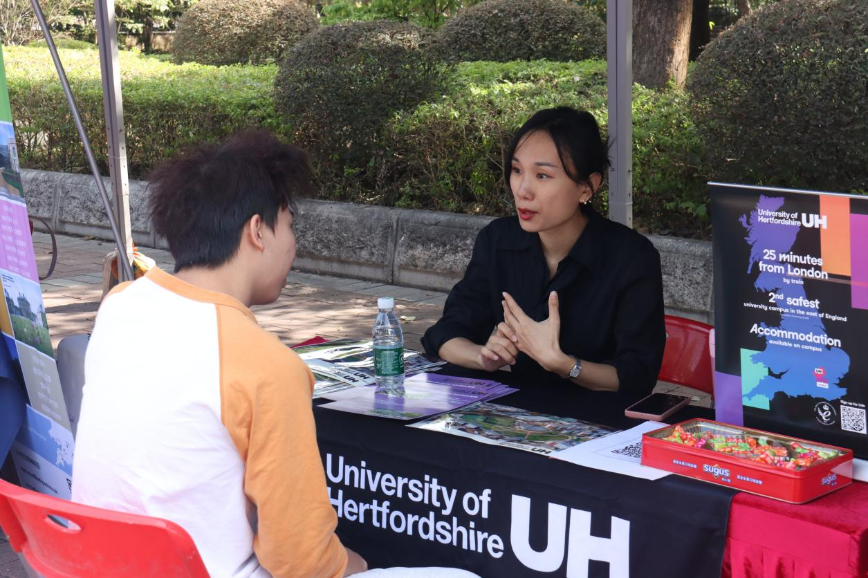 按教育部(中国)留学服务中心(以下简称“中留服”)要求,为增进英国高等教育文凭项目(即SQA AD项目)学生对海外合作大学的了解,以便更有效地协助学生进行留学规划,yl23455永利集团于10月25日上午在北教甲子广场成功举办了“2024年英国高等教育文凭项目高校交流会”。此次交流会汇集了来自英国、澳大利亚、新加坡和匈牙利等国家的30余所国外高校代表,吸引了大量学生及家长参与咨询与交流。