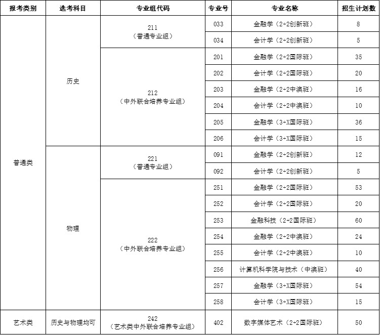 ② 211(普通类)和221(普通类)专业组录取的学生,在符合专业录取条件的情况下,可在入学后转入212(中外联合培养)、222(中外联合培养)、242(艺术类中外联合培养)专业组相应专业;212(中外联合培养)、222(中外联合培养)、242(艺术类中外联合培养)专业组录取的学生,不能转入211(普通类)和221(普通类)专业组所属专业。