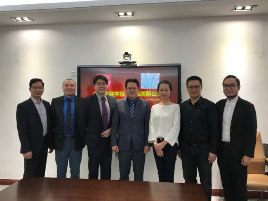 初可佳院长就我校办学特色,近几年科研成绩和人才培养方面的情况,以及国际教育项目的发展目标向来访客人作了介绍。郭震教授介绍了蔚山大学国际教育项目的情况。双方围绕两校间的建立学分互认项目、开设韩国语预科、学生交流、科研合作、在我校开办世宗学堂和在蔚山大学开办孔子学院等共同感兴趣的话题进行了讨论。