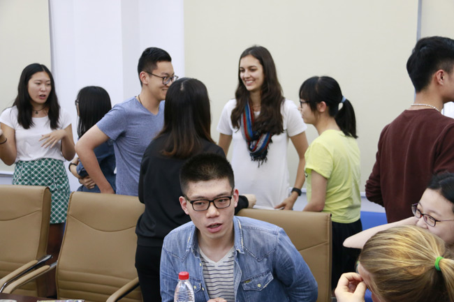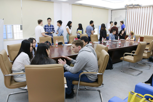 2016年4月20日,澳洲西澳大利亚大学商学院国际部主任Bev Partridge和体验中心负责人Hannah Wilkinson带领8名优秀的西澳大学商学院学生来访我校,并与国教院十余名优秀学生进行了友好交流。交流会上,双方学生首先分别用视频和PPT的方式对各自的大学进行了介绍;然后进行分组讨论,中澳学生就中澳学习和授课方式差异、文化差异等问题展开了深入的交流;最后双方学生互赠纪念品并合影留念。交流会气氛融洽,双方学生都充分感受到彼此之间的热情。