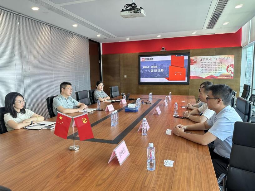 上午,调研队前往国新证券深圳分公司调研交流,国新证券深圳分公司总经理邱文彬、综合部副总经理廖佳、总经理助理岳苏鸿参与座谈。