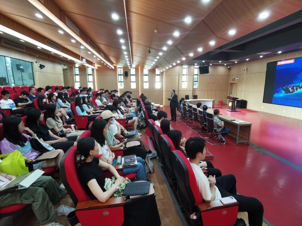 讲座在北教103阶梯教室举行,国教院2022级和2023级金融和会计专业的学生济济一堂,认真聆听了Stangl博士的讲座。讲座进行过程中Stangl博士也亲切地尽量靠近在座学生,并与大家进行了热烈的问答互动。