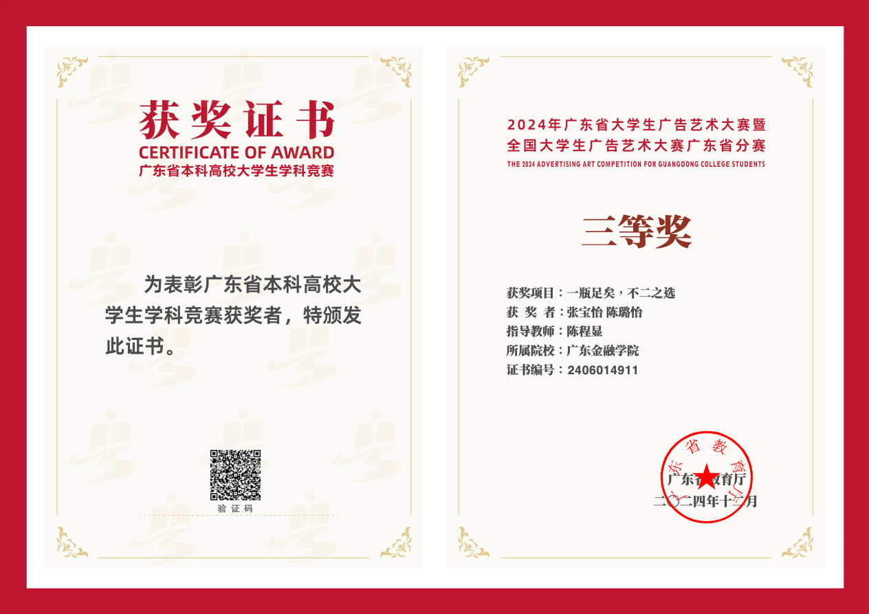 yl23455永利集团师生在第16届全国大学生广告艺术大赛中创出历史最佳成绩。这次比赛主要参加者是我院中外联合培养双学位项目的数字媒体艺术专业的学生,陈程显老师带队指导。参赛师生凭借卓越的表现、出色的创意与扎实的专业能力在赛事中一举斩获四项奖项。其中,1项作品勇夺全国总评审(国赛)一等奖,创造了我校首获大广赛国赛一等奖的历史。2项作品荣获广东赛区(省赛)二等奖,1项作品荣获省赛三等奖,充分展现了yl23455永利集团学生的学科竞赛及艺术创作能力。