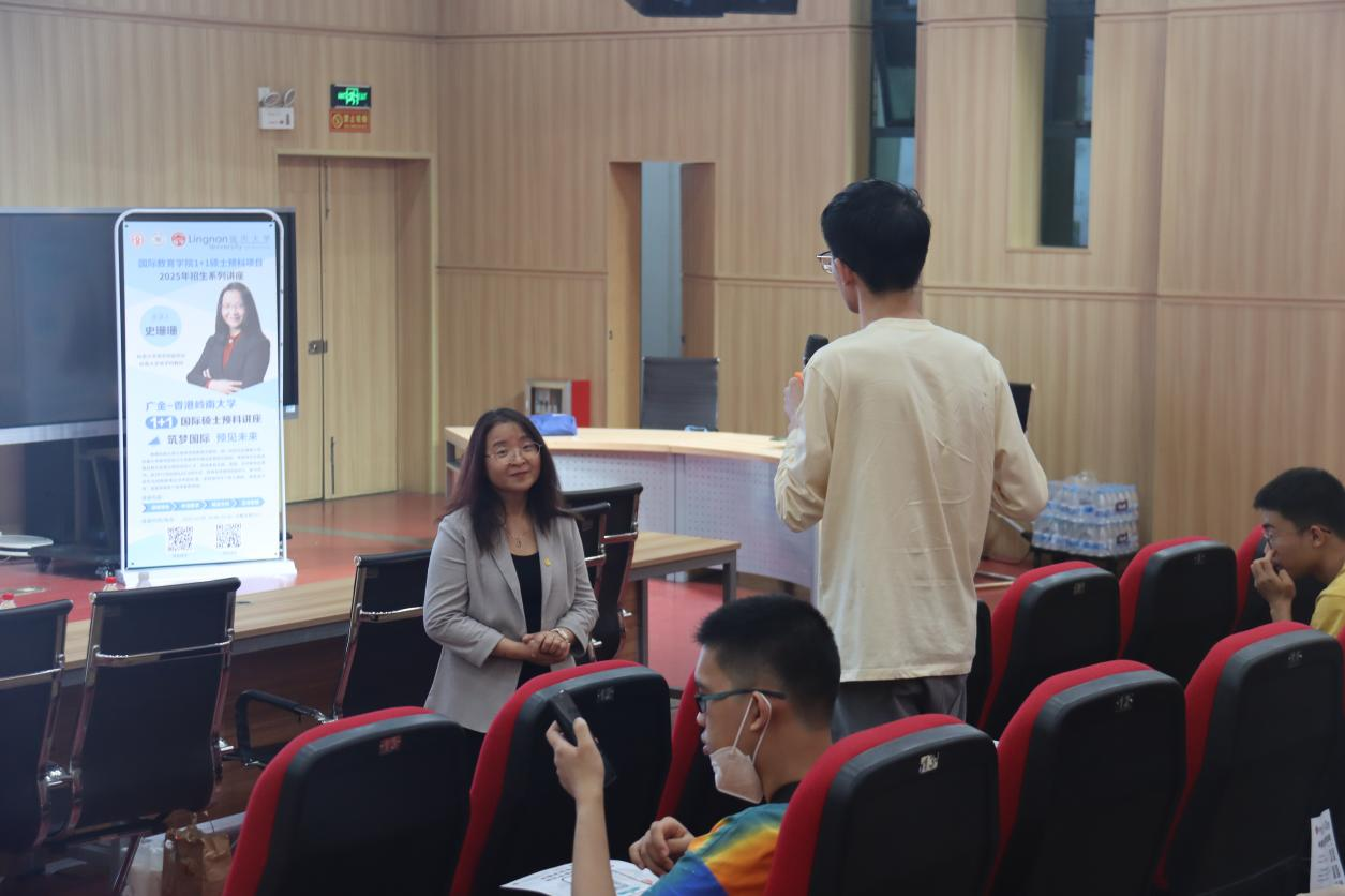 宣讲会尾声,在互动环节中,史教授与同学们热情互动,解答了硕士专业选择、宿舍生活、申请等具体问题。再次感谢史教授的精彩分享,让同学们深入了解了岭南大学的学术优势与校园文化,也为他们的申读硕士规划提供了重要参考。