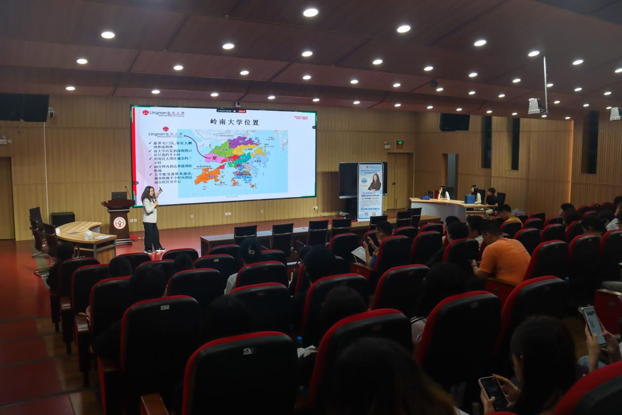 随后,史教授重点讲解了岭南大学的地理位置与校园环境。主校区坐落于香港屯门,毗邻深圳湾口岸,仅20分钟车程即可抵达深圳,学生可畅享粤港澳大湾区的经济活力与创新资源。香港作为国际金融中心,汇聚全球名企,为岭南学子提供了丰富的实习与就业机会。