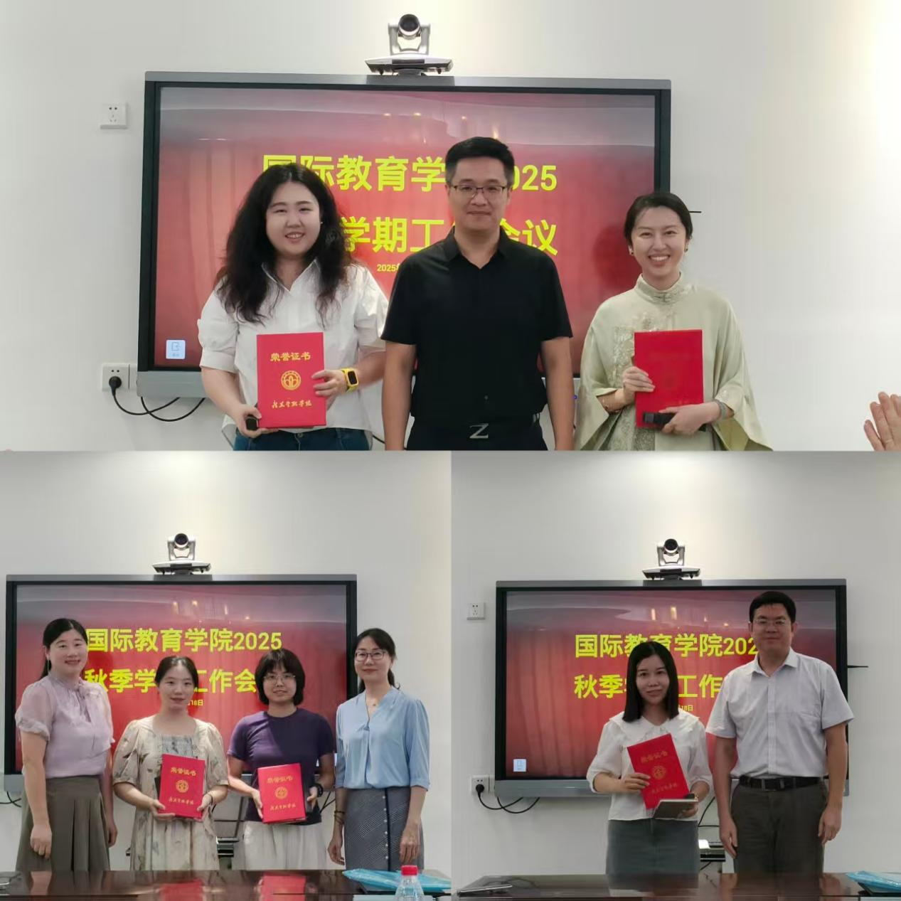 会上,学院党委书记李镔、副院长魏东霞、副院长陈茜共同为取得青教赛佳绩的教师们颁发证书,以资鼓励。随后,陈茜表示学院将联合教育部留学服务中心等平台资源,通过项目式学习和实践,全面提升教师职业素养。魏东霞就教学和科研方面提出数字化教学改革等举措,旨在国际教育项目中以文化包容与学术严谨引导学生成长。学院党委副书记林升指出,学生的成长与发展离不开教师们的共同努力。