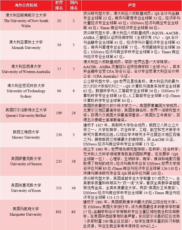 国际金融(CFA方向) 国际会计(ACCA方向) 商务管理 计算机科学 |
