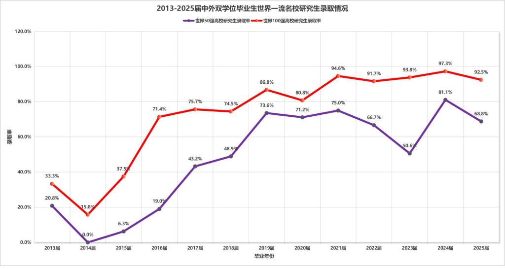 中外联合培养双学位毕业生世界百强院校研究生录取情况 |