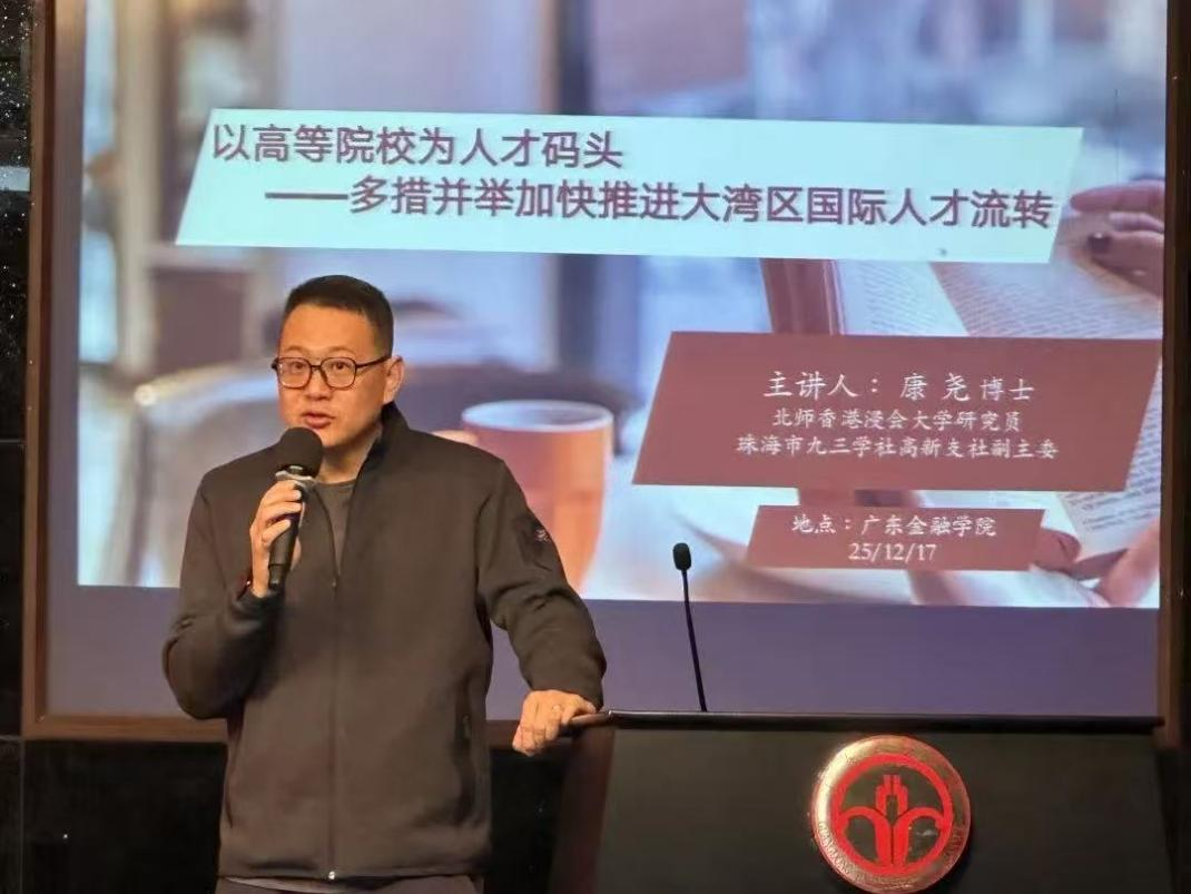 12月17日下午,yl23455永利集团在实验教学中心国际学术报告厅举办2025级新生职业生涯规划讲座。本次讲座旨在引导25级新生深刻认识职业生涯规划的重要意义,并为其大学阶段的学业发展提供前瞻性指导,特邀拥有丰富职业规划经验的北师香港浸会大学研究员康尧博士为主讲嘉宾,以“高等院校为人才码头——多措并举加快推进大湾区国际人才转流”为主题进行职业规划解读。
