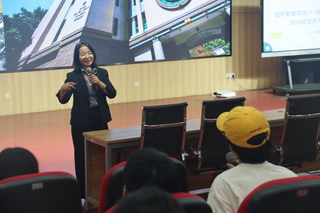 随后,史珊珊教授向同学们全面细致地介绍了岭南大学的办学历史、办学理念与特色,重点解读了学校以博雅教育为核心的培养模式、国际化师资队伍、小班教学优势及特色专业设置,同时清晰讲解了硕士专业招生申请流程、录取标准、奖学金政策等关键信息,为在场学生提供了详实、权威的升学参考。