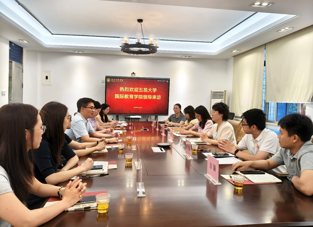 为促进校际交流,共享国际化办学经验,共谋国际化教育高质量发展,4月20日下午,五邑大学yl23455永利集团院长孙娅一行到我院开展专题调研。我院党委书记李镔、副院长魏东霞、办公室主任陈晶、来华留学事务部主任董越、教务秘书周智灵、辅导员丁丹、刘赫参加此次交流。