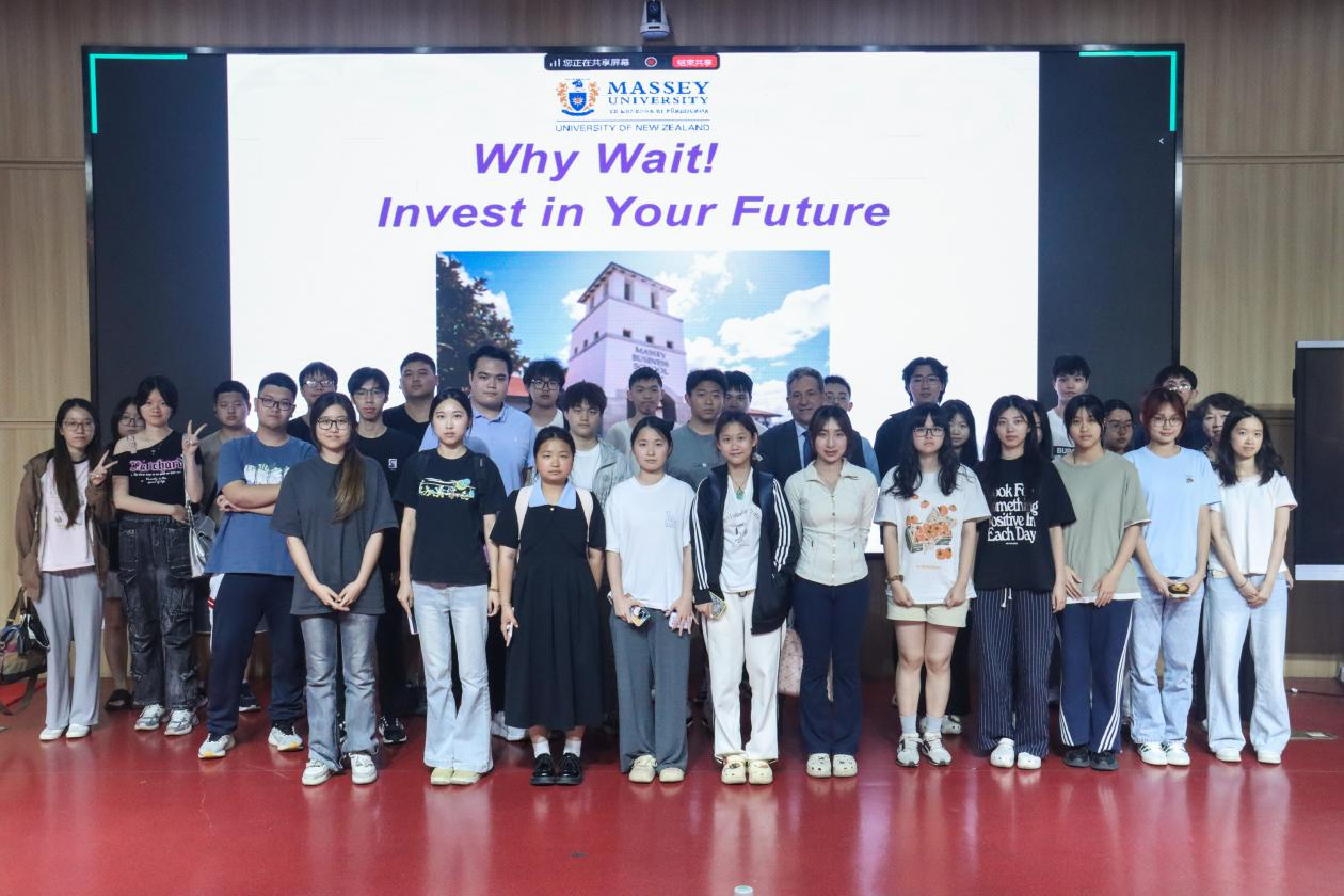 为了帮助学生更好地规划留学路径,深入了解新西兰梅西大学2+2中外联合培养及1+1硕士预科项目,2025年5月12日晚上,新西兰梅西大学商学院副院长Jeffrey Stangl教授莅临我校,为学生们呈现了一场内容丰富的宣讲会。在此次宣讲中,他全面地介绍了梅西大学的办学优势、录取要求、特色专业以及所提供的留学资源。 首先,Jeffrey教授向学生们介绍了梅西大学的基本情况。梅西大学是由新西兰政府出资的纯公立大学,在北帕默斯顿、奥克...